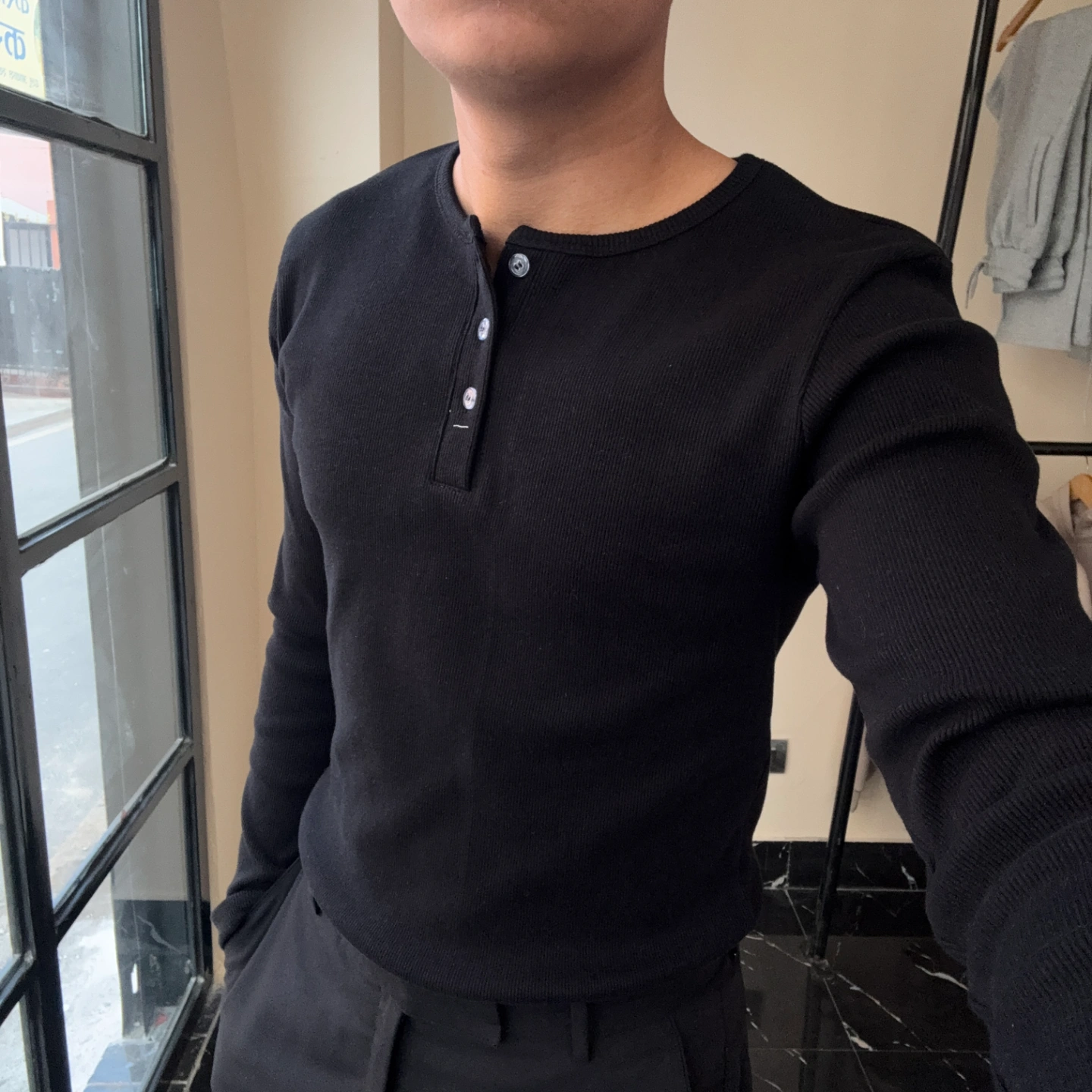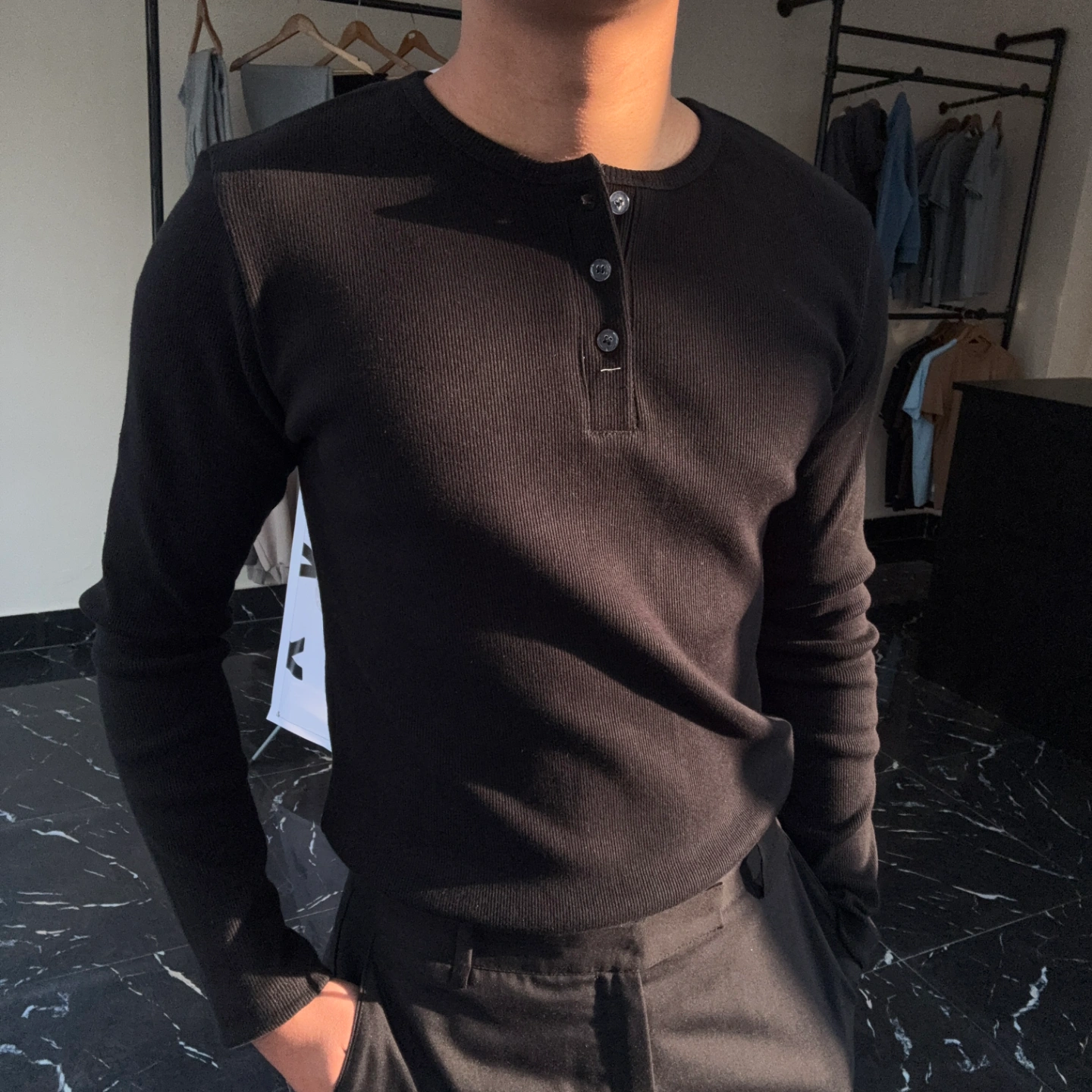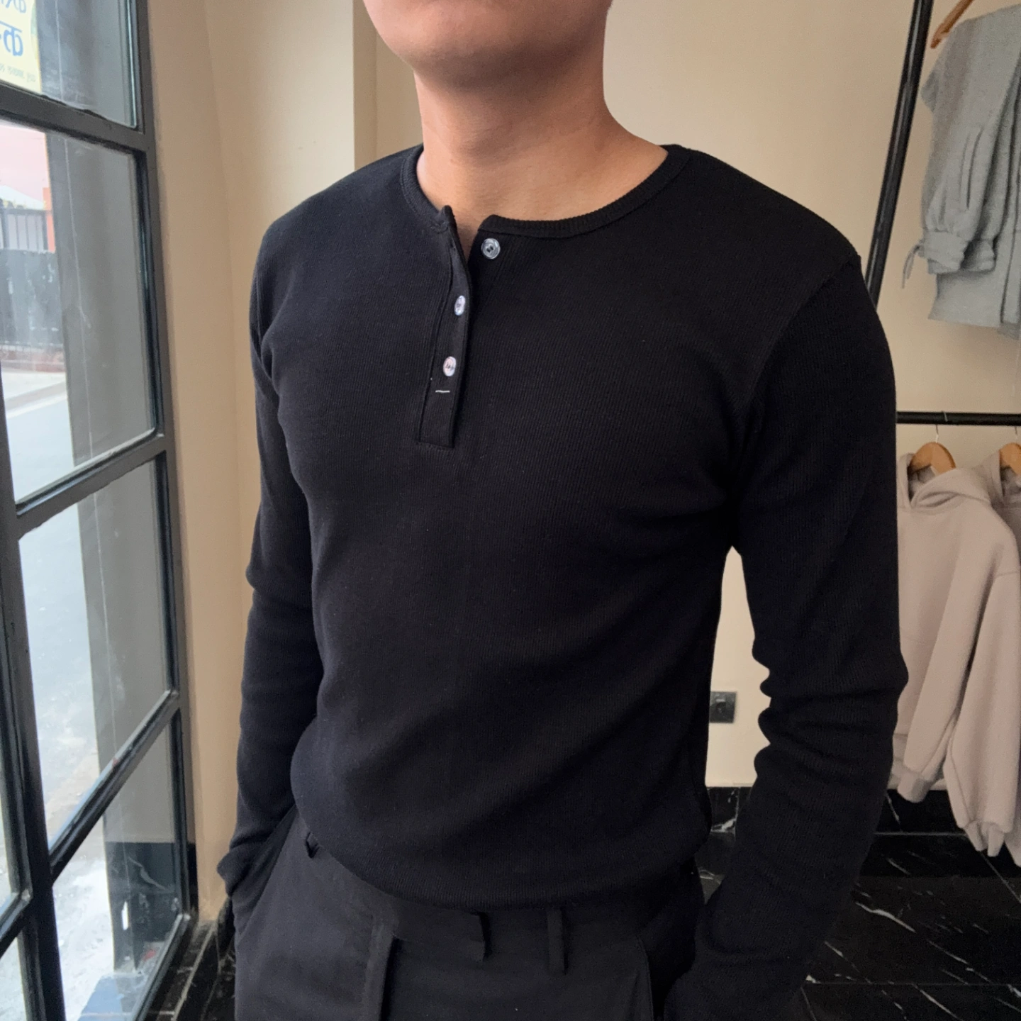 LONG SLEEVE HENLEY TSHIRT (BLACK)